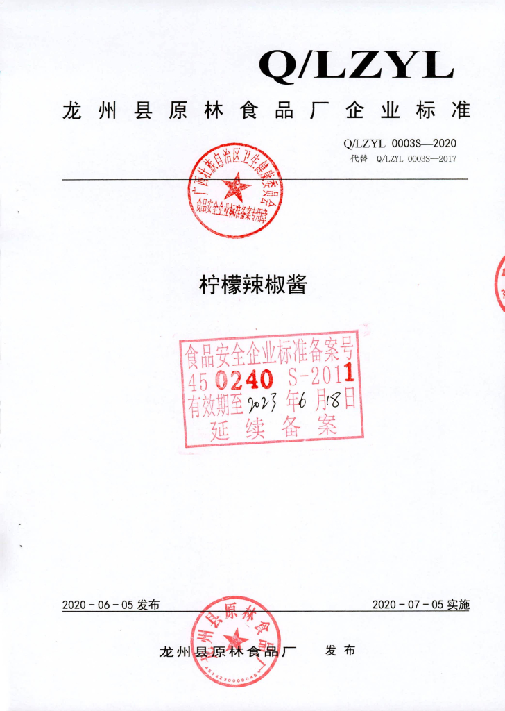 Q/LZYL 0003S-2020 柠檬辣椒酱