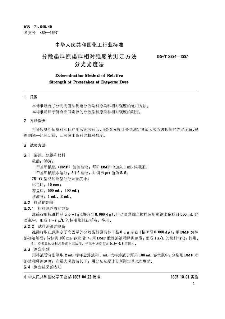 HG/T 2894-1997 分散染料原染料相对强度的测定方法 分光光度法