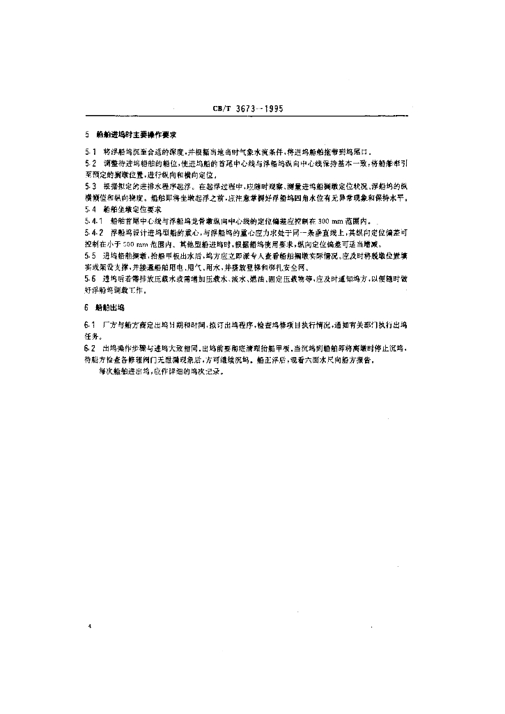 CB/T 3673-1995 船舶进出浮船坞技术要求