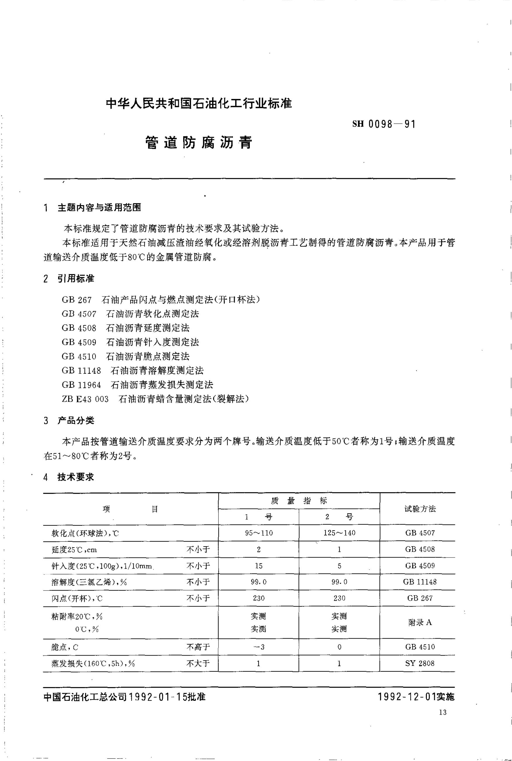SY/T 0315-1997 钢质管道熔结环氧粉末外涂层技术标准