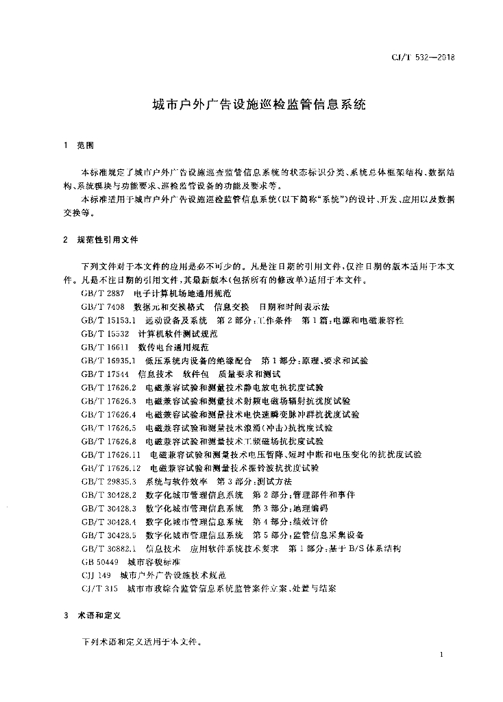 CJ/T 532-2018 城市户外广告设施巡检监管信息系统