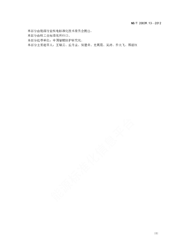NB/T 20039.13-2012 核空气和气体处理规范 通风、空调与空气净化 第13部分:碘吸附器(Ⅲ型)