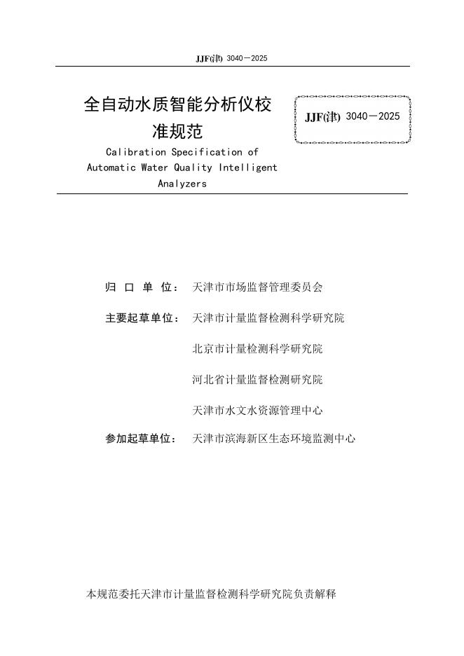 JJF(津)3040-2025 全自动水质智能分析仪校准规范