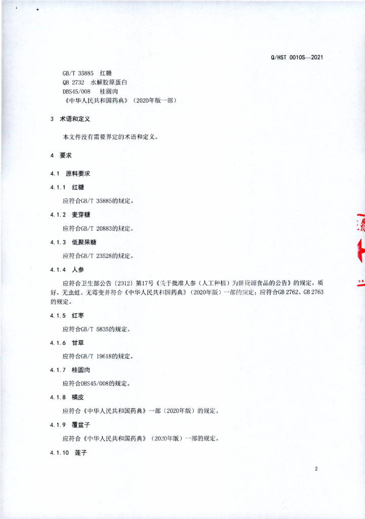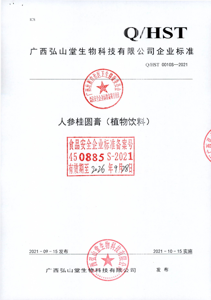 Q/HST 0010S-2021 人参桂圆膏(植物饮料)