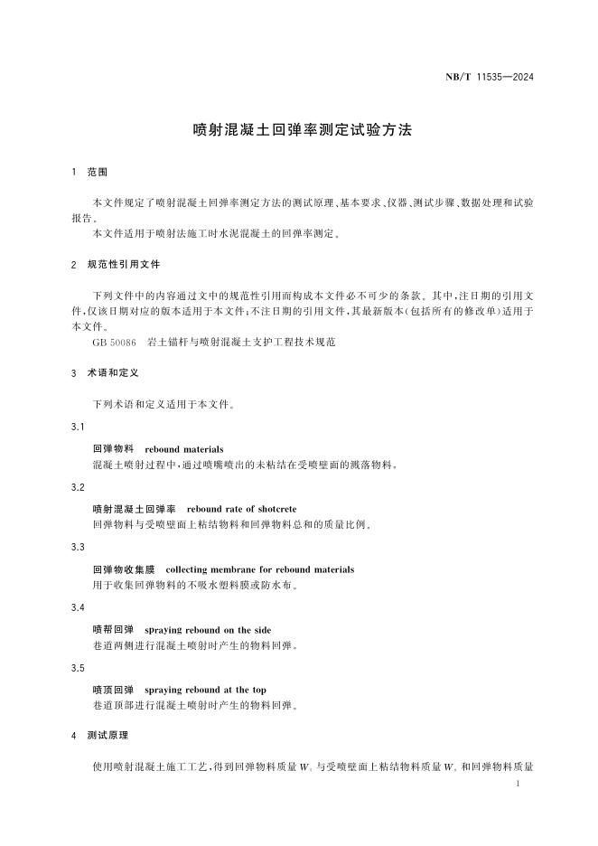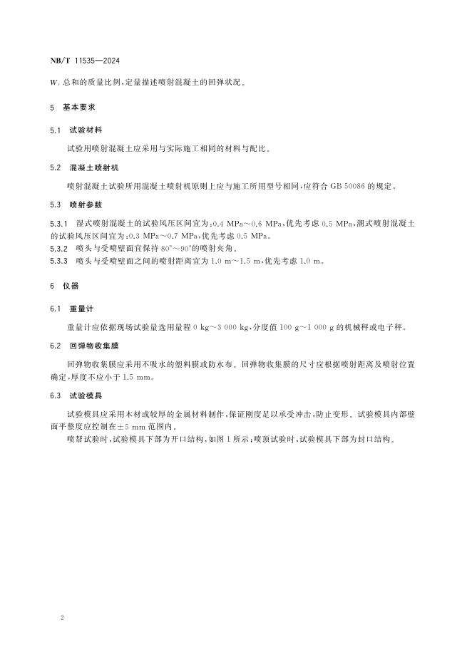 NB/T 11535-2024 喷射混凝土回弹率测定试验方法