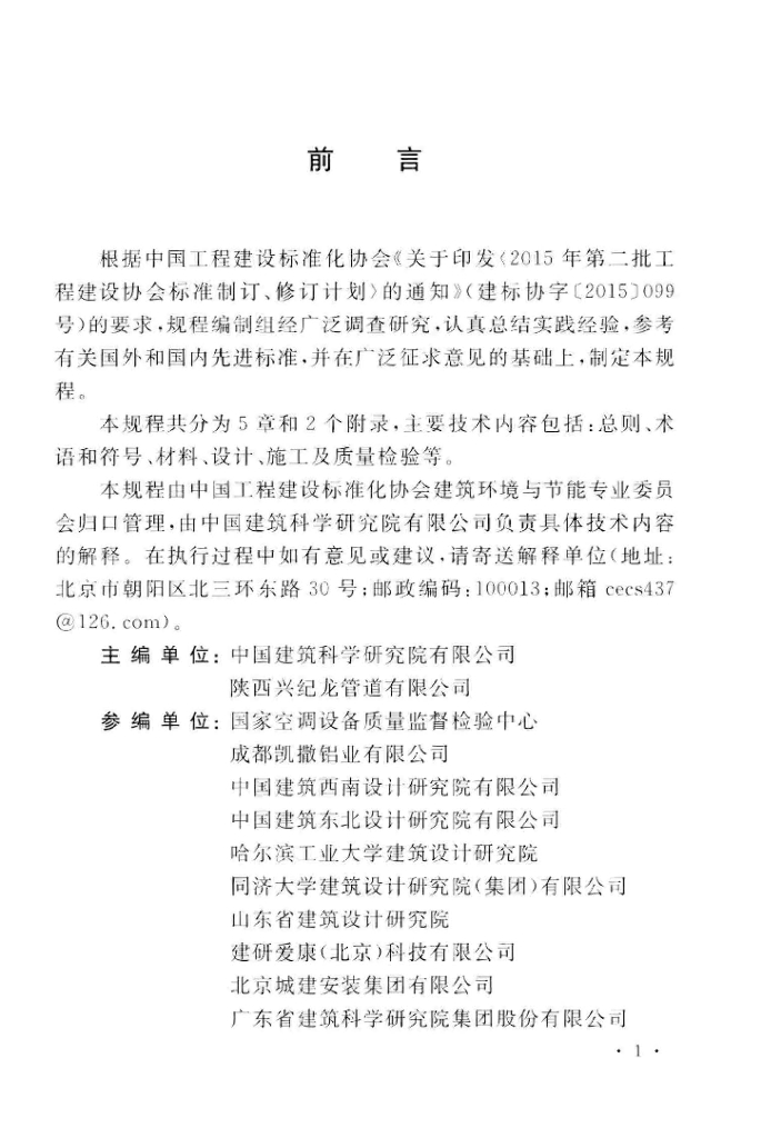 中国建筑科学研究院有限公司 陕西兴纪龙管道有限公司 国家空调设备质量监督检验中心 成都凯撒铝业有限公司 中国建筑西南设计研究院有限公司 中国建筑东北设计研究院有限公司 哈尔滨工业大学建筑设计研究院 同济大学建筑设计研究院(集团)有限公司 山东省建筑设计研究院 建研爱康(北京)科技有限公司 北京城建安装集团有限公司 广东省建筑科学研究院集团股份有限公司 国家建筑工程质量监督检验中心 杭州大湛机电科技有限公司 北京华宏环能科技有限公司
