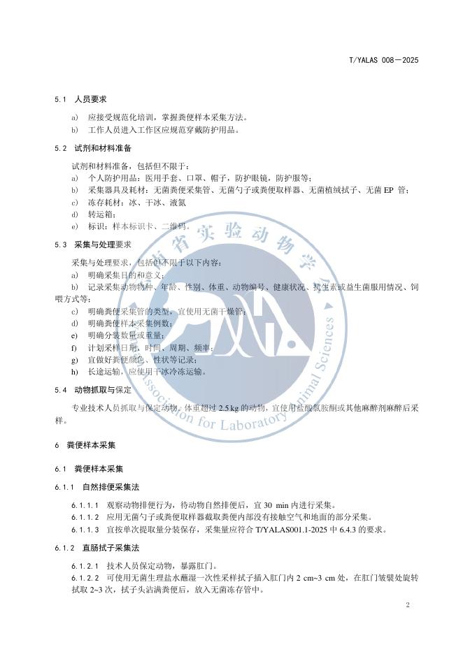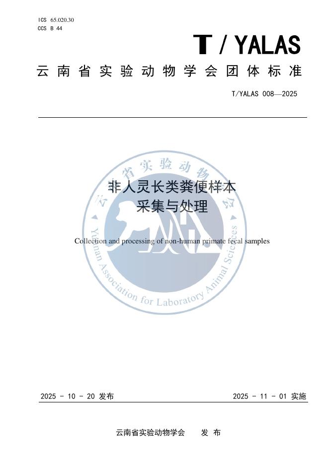 T/YALAS 008-2025 非人灵长类粪便样本采集与处理
