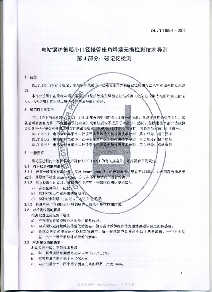 DL/T 1105.4-2010 电站锅炉集箱小口径接管座角焊缝 无损检测技术导则 第4部分:磁记忆检测