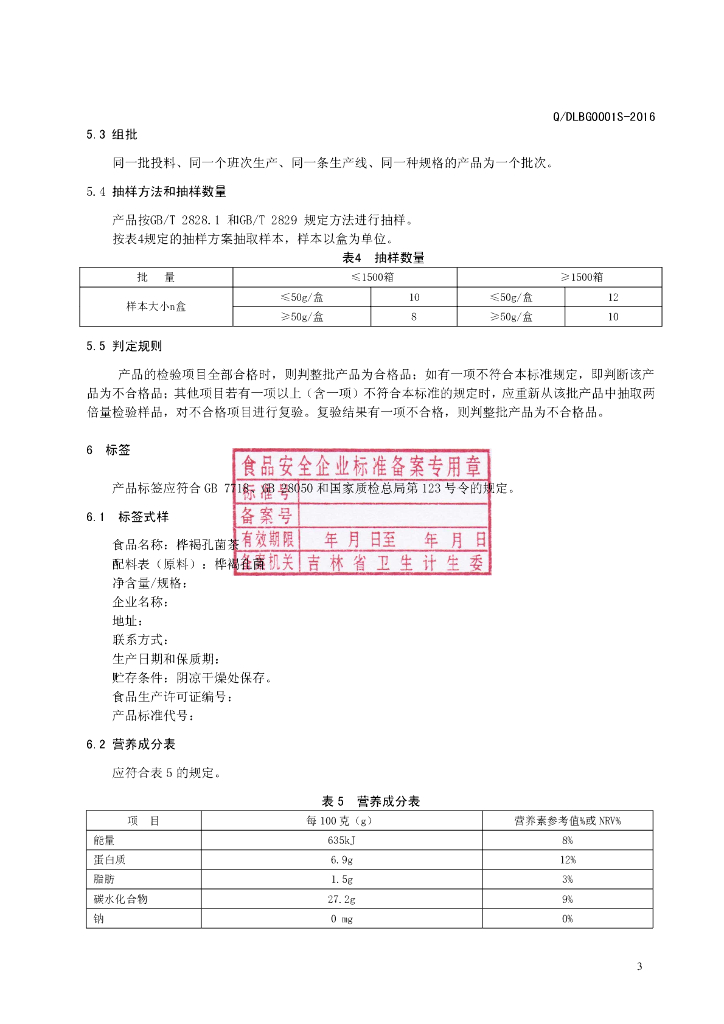 Q/DLBG 0001S-2016 吉林绿波中药药业有限公司 桦褐孔菌茶