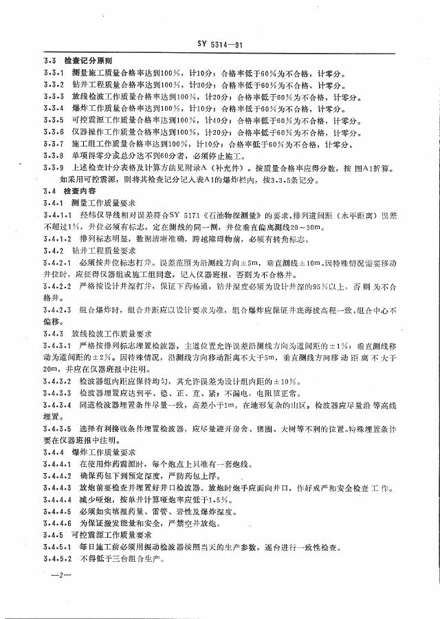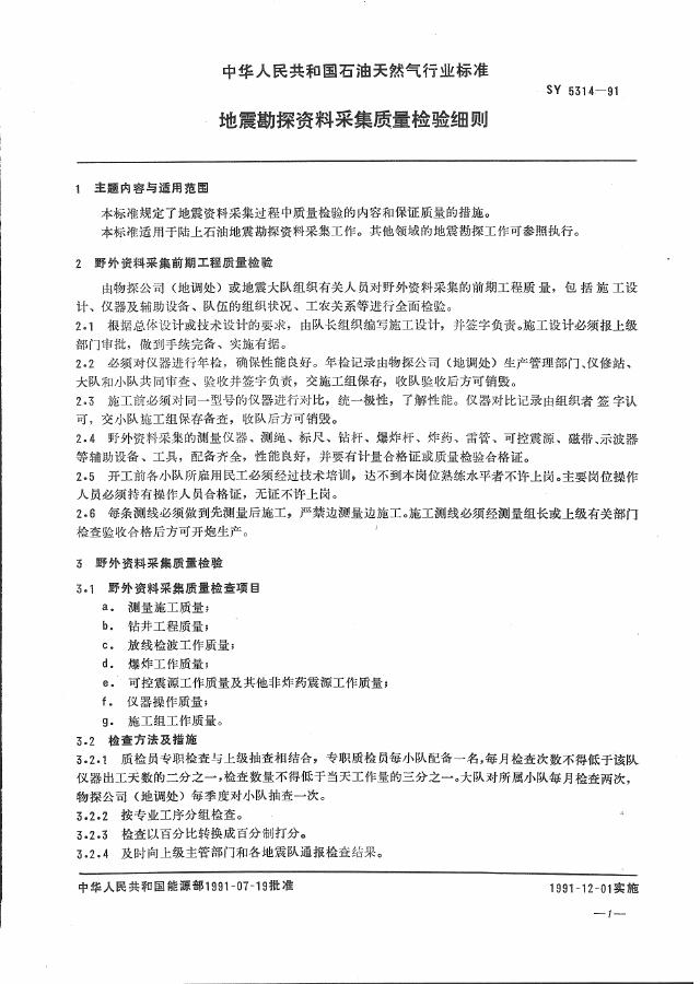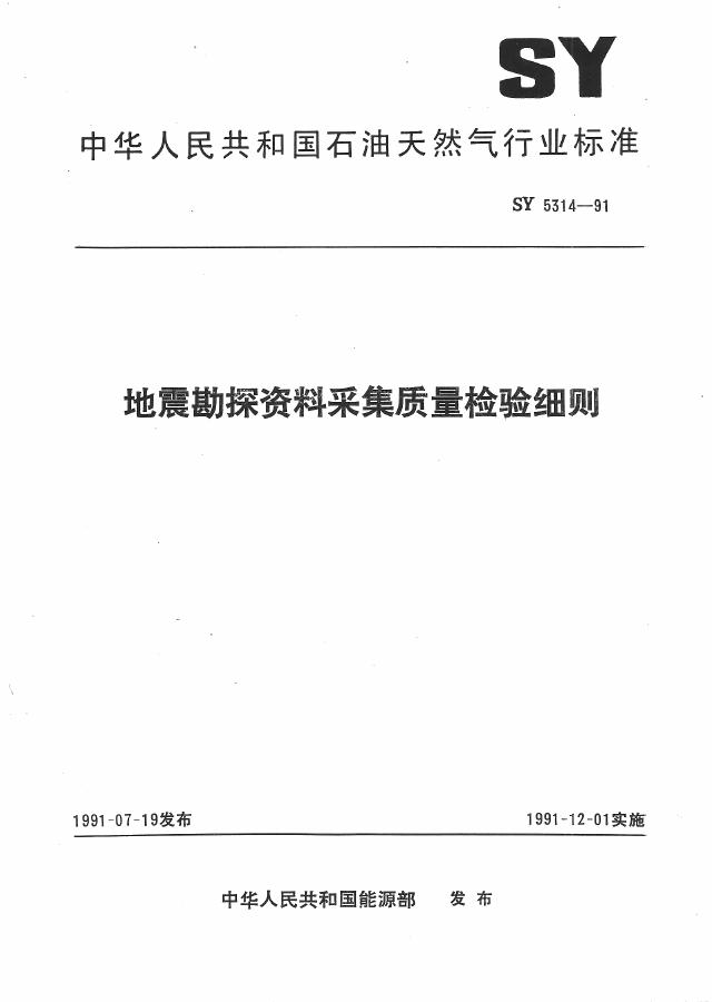 SY 5314-1991 地震勘探资料采集质量检验细则