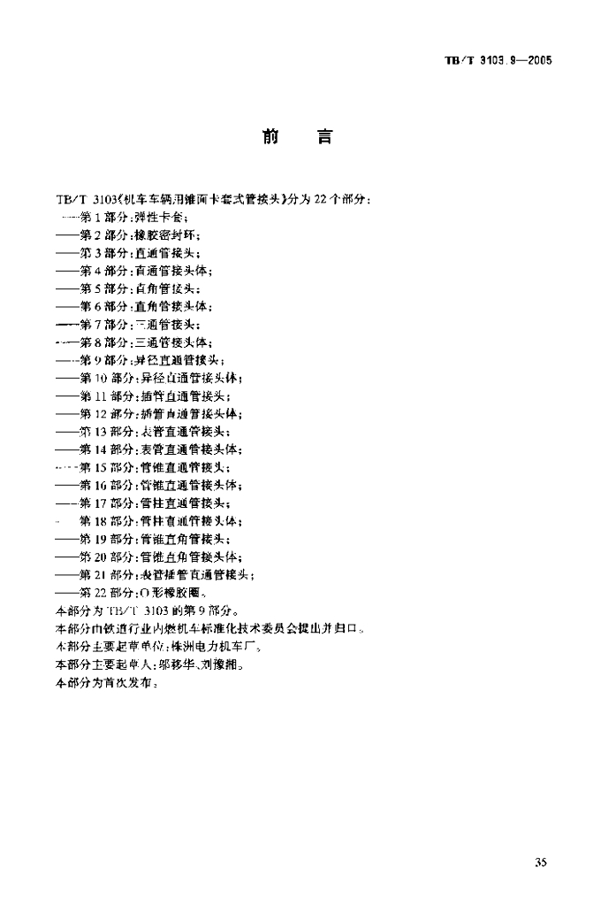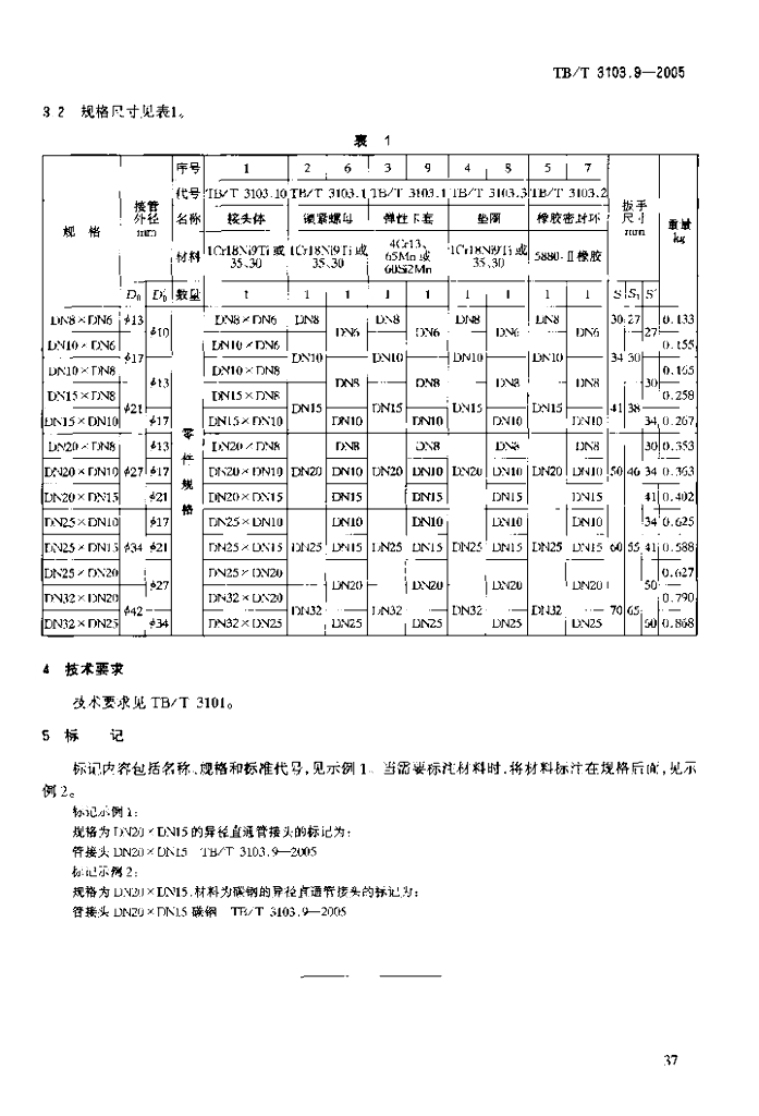 TB/T 3103.9-2005 机车车辆用锥面卡套式管接头 第9部分:异径直通管接头