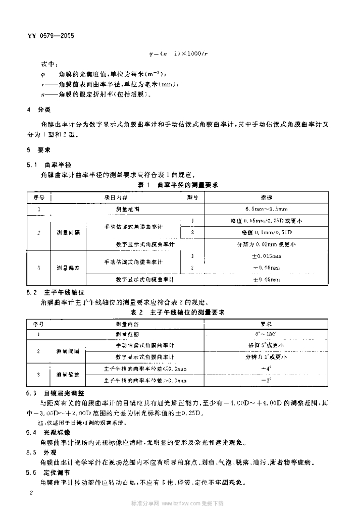 YY 0579-2005 角膜曲率计