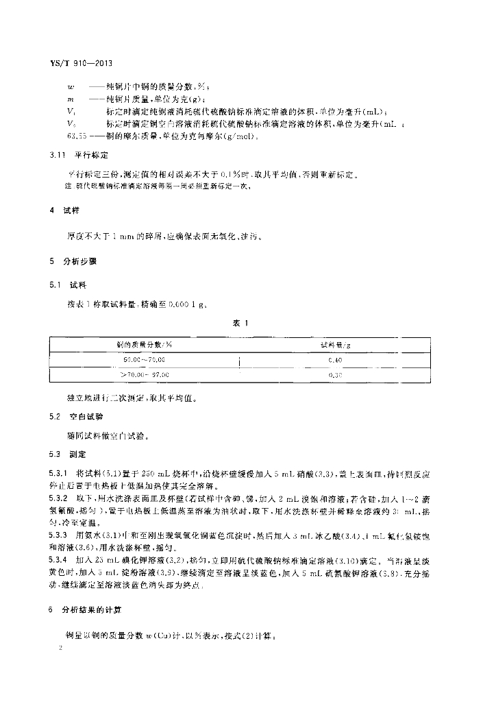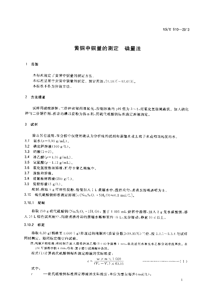 YS/T 910-2013 黄铜中铜量的测定 碘量法
