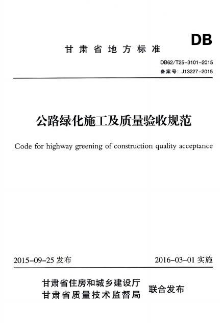 DB62/T 25-3101-2015 公路绿化施工及质量验收规范