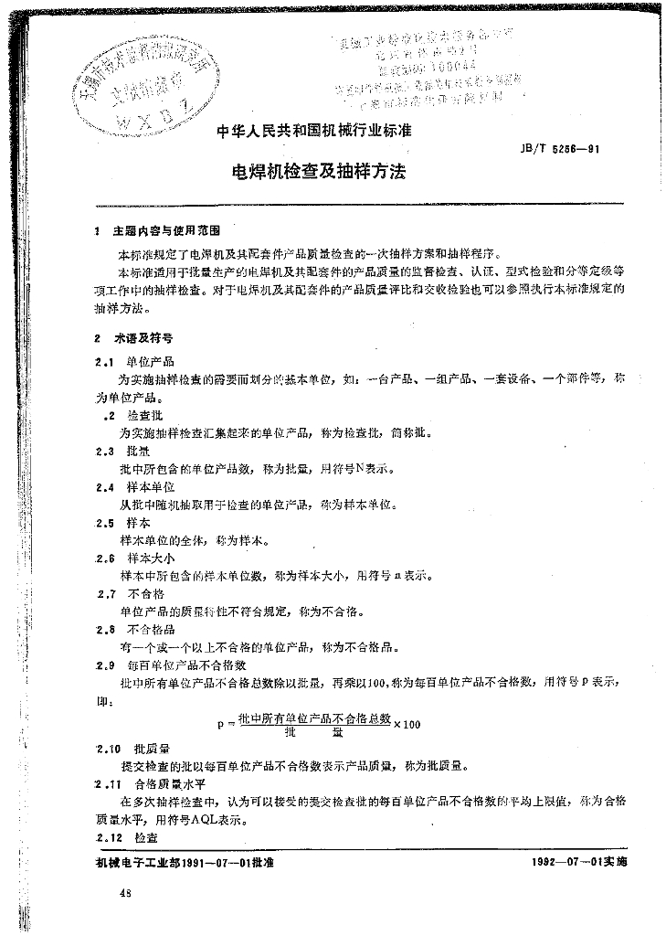 JB/T 5256-1991 电焊机检查及抽样方法