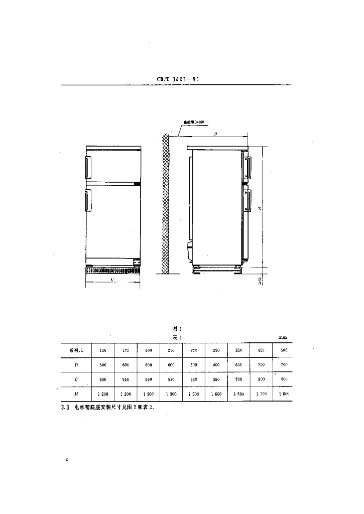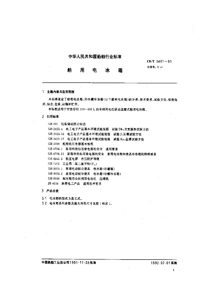 CB/T 3401-1991 船用电冰箱