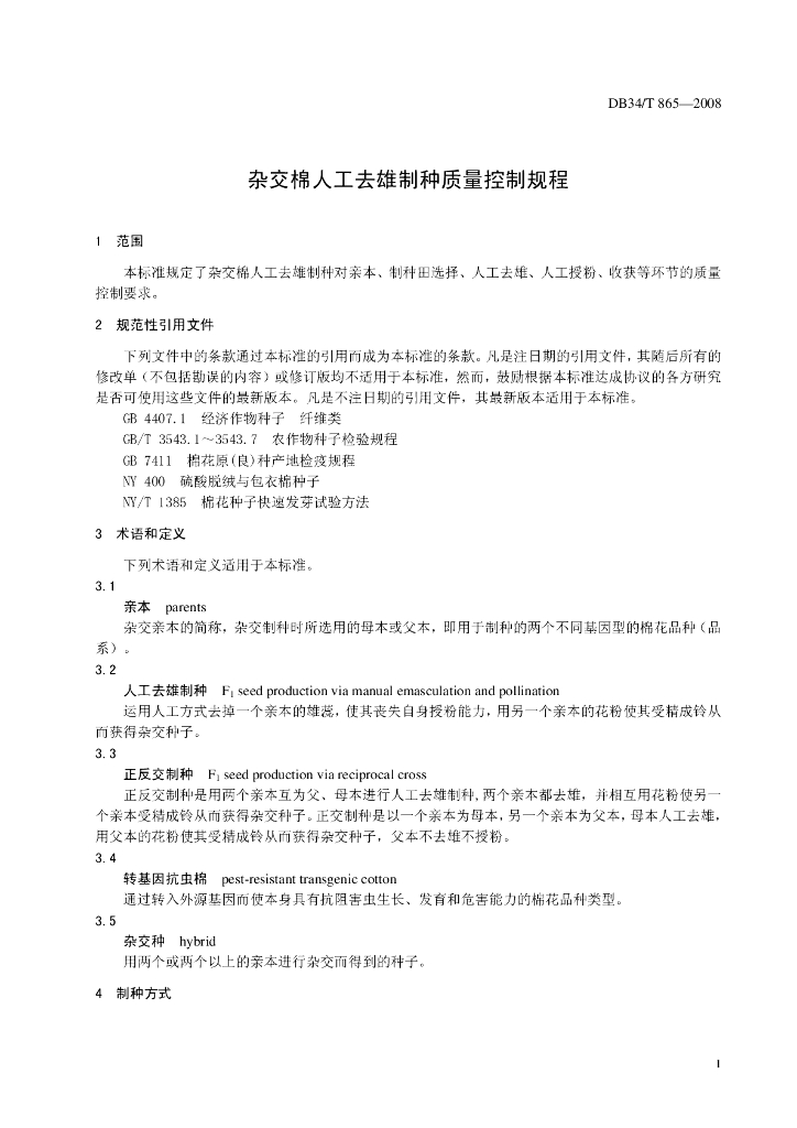 DB34/T 865-2008 杂交棉人工去雄制种质量控制规程