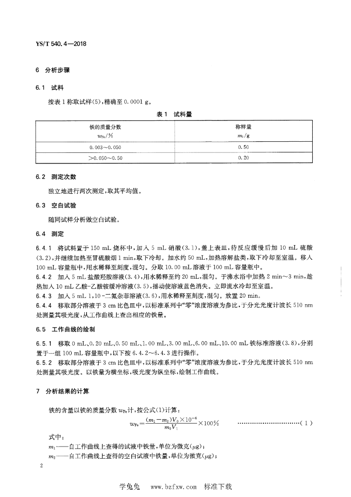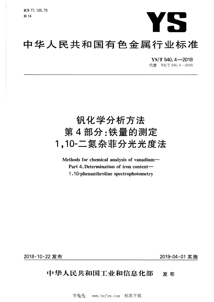 YS/T 540.4-2018 钒化学分析方法 第4部分:铁量的测定 1,10-二氮杂菲分光光度法