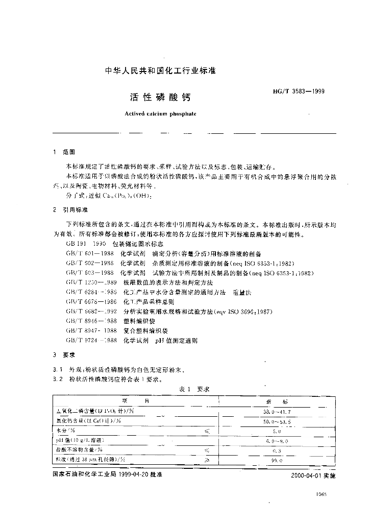 HG/T 3583-1999 活性磷酸钙