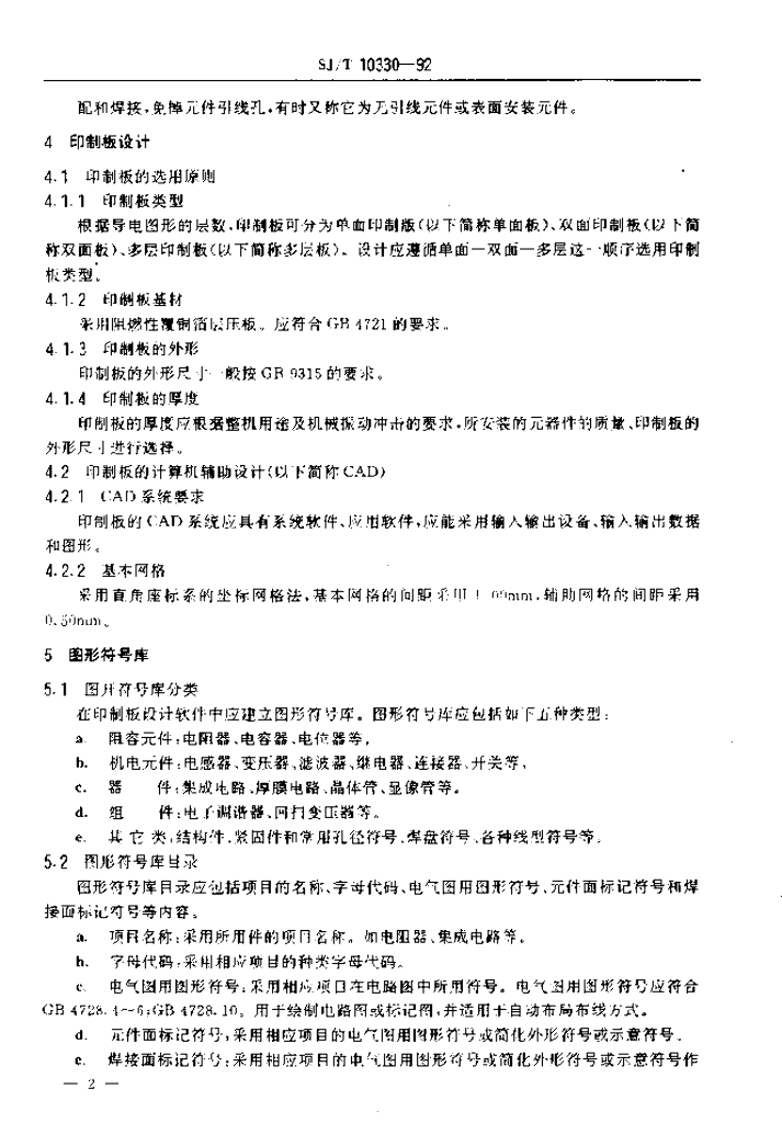 SJ/T 10330-1992 彩色电视广播接收机印制板制图
