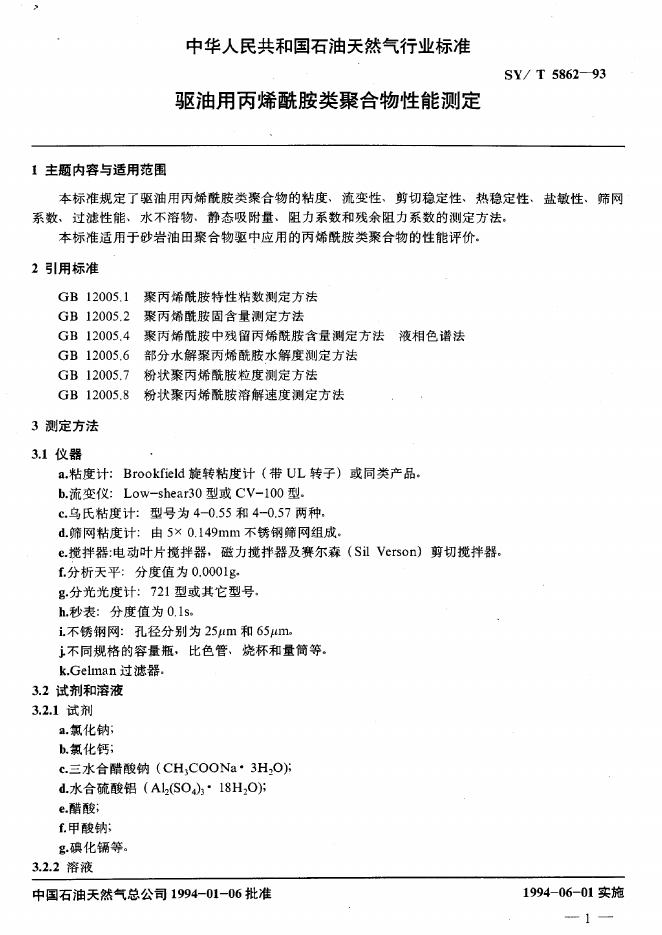 SY/T 5862-1993 驱油用丙稀酰胺类聚合物性能测定