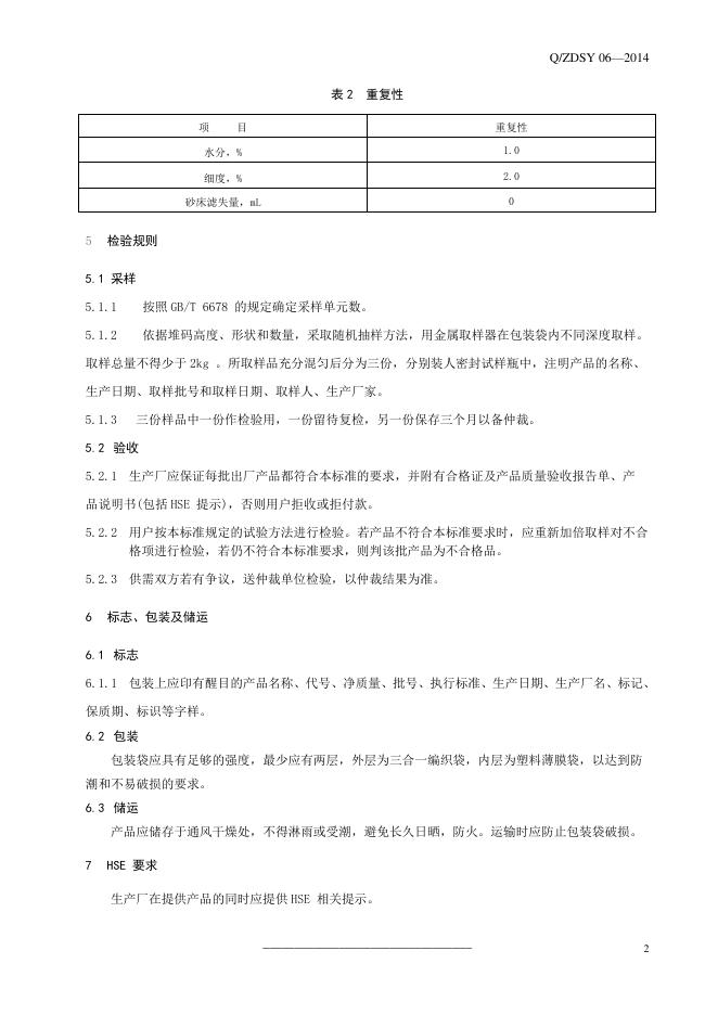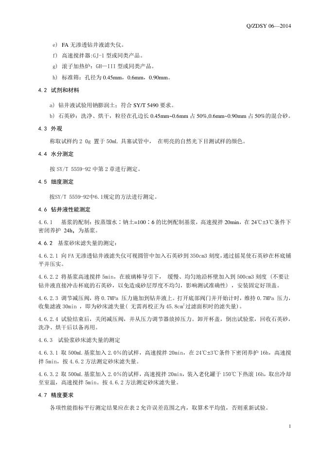 Q/ZDSY 06-2014 钻井液用堵漏剂改性植物纤维