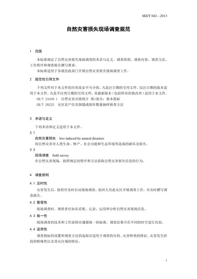MZ/T 042-2013 自然灾害损失现场调查规范