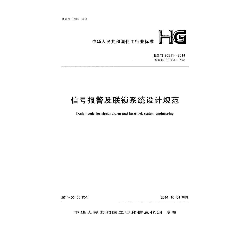 HG/T 20511-2014 信号报警及联锁系统设计规范