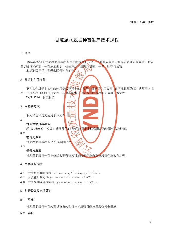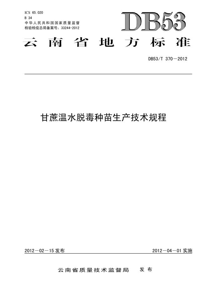 DB53/T 370-2012 甘蔗温水脱毒种苗生产技术规程