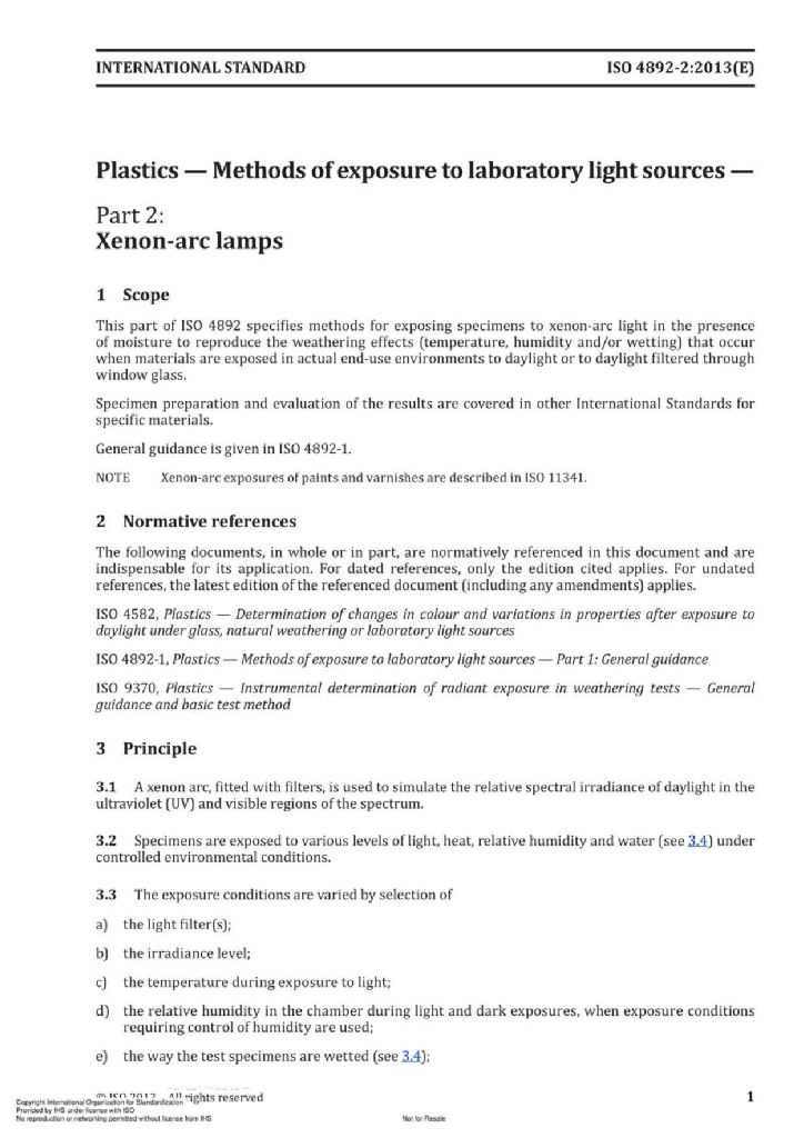 ISO 4892-2:2013 塑料 实验室光源暴露方法 第2部分:氙弧灯