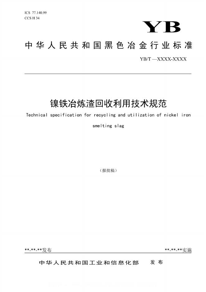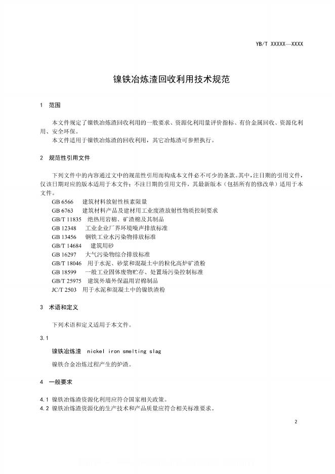 YB/T 6321-2024 镍铁冶炼渣回收利用技术规范