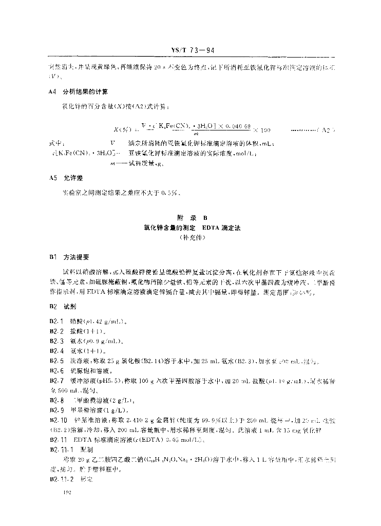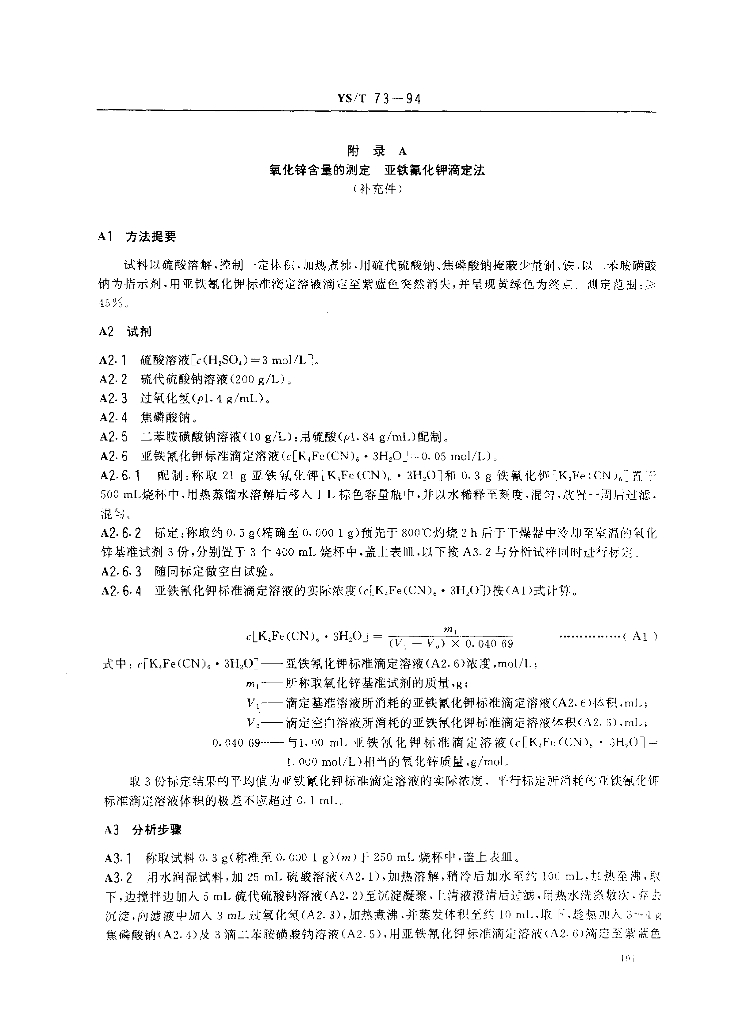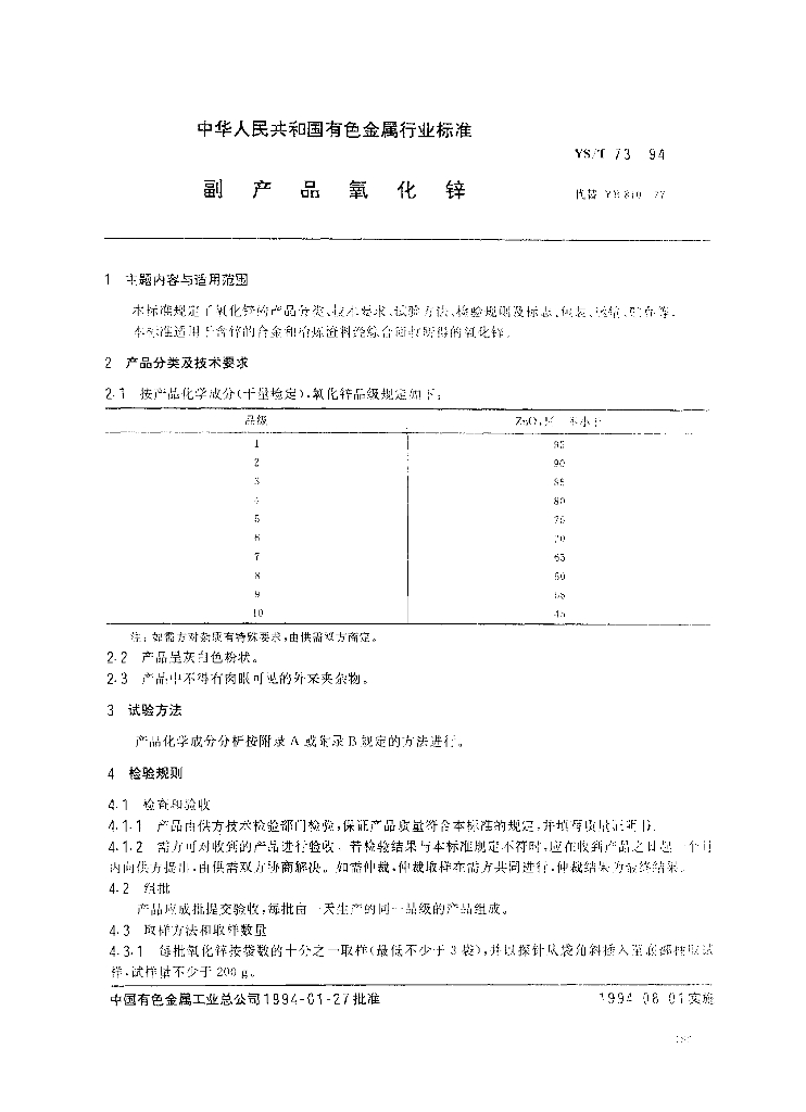 YS/T 73-1994 副产品氧化锌