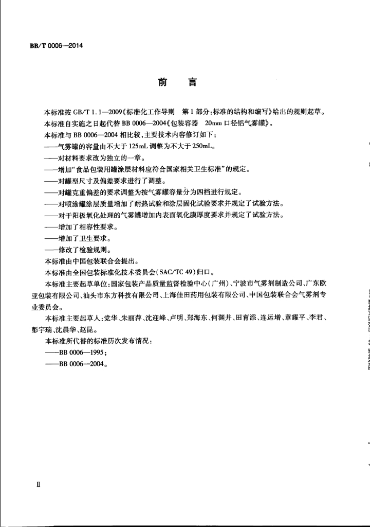 BB/T 0006-2014 包装容器 20mm口径铝气雾罐