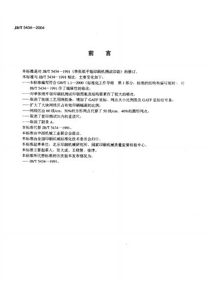 JB/T 5434-1991 单张纸平版胶印机测试印板