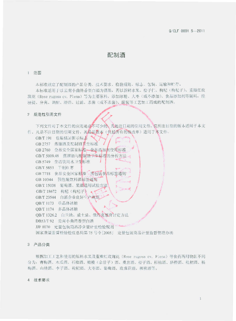 Q/CLF 0001S-2011 配制酒