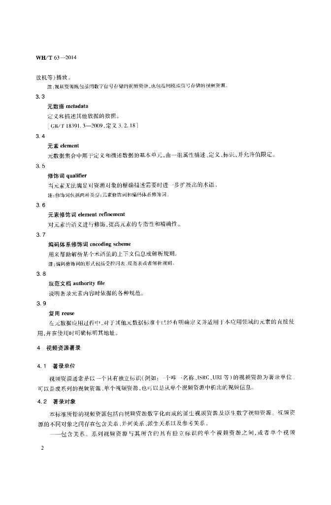 WH/T 63-2014 视频资源元数据规范