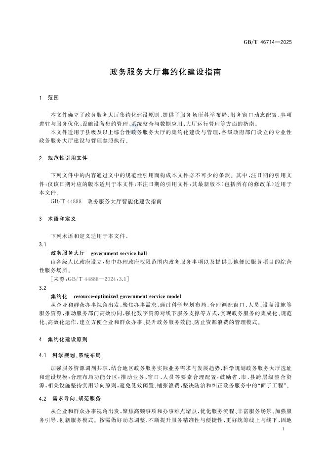 GB/T 46714-2025 政务服务大厅集约化建设指南