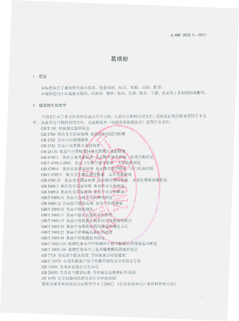 Q/AMX 0003S-2011 葛根粉