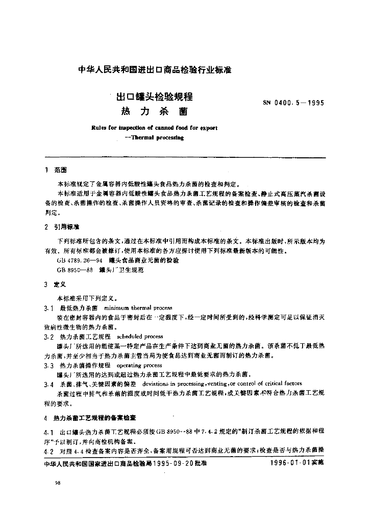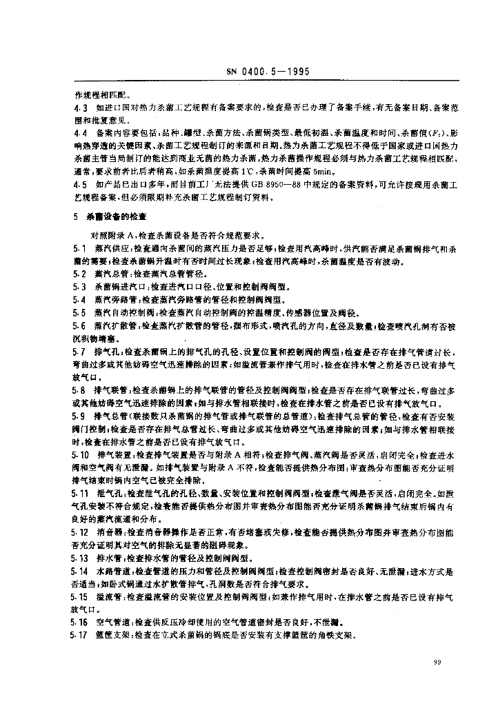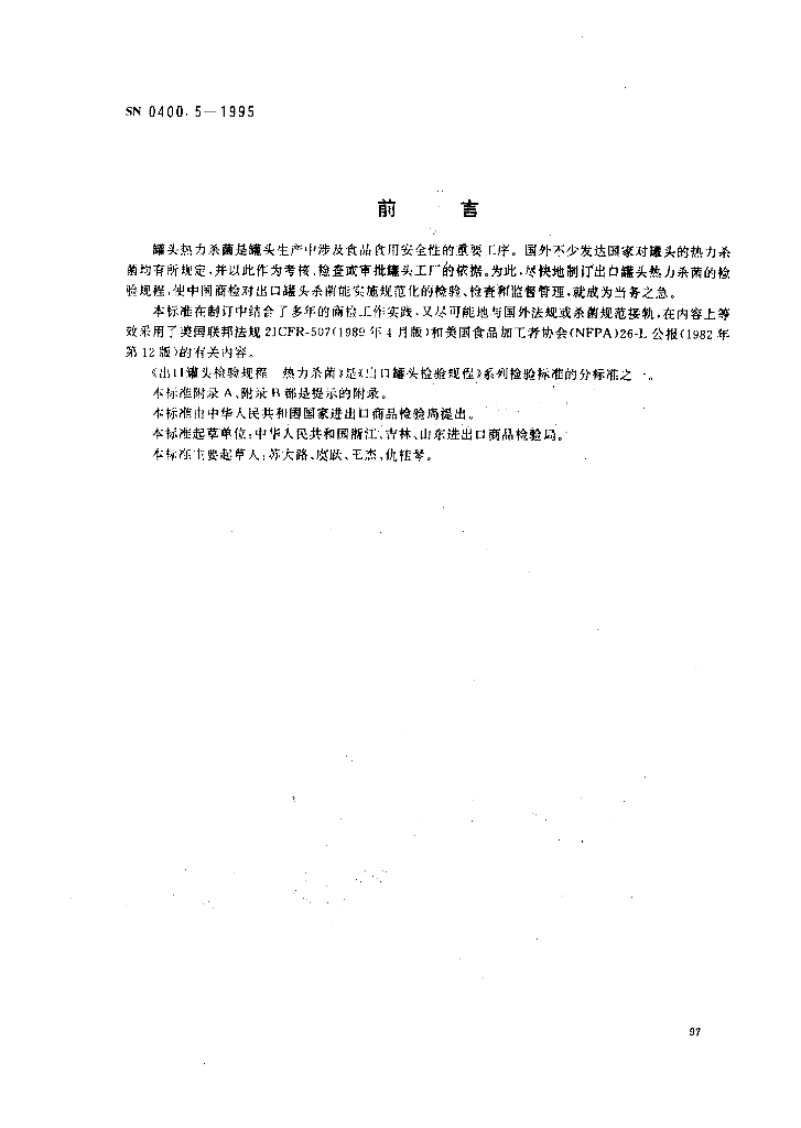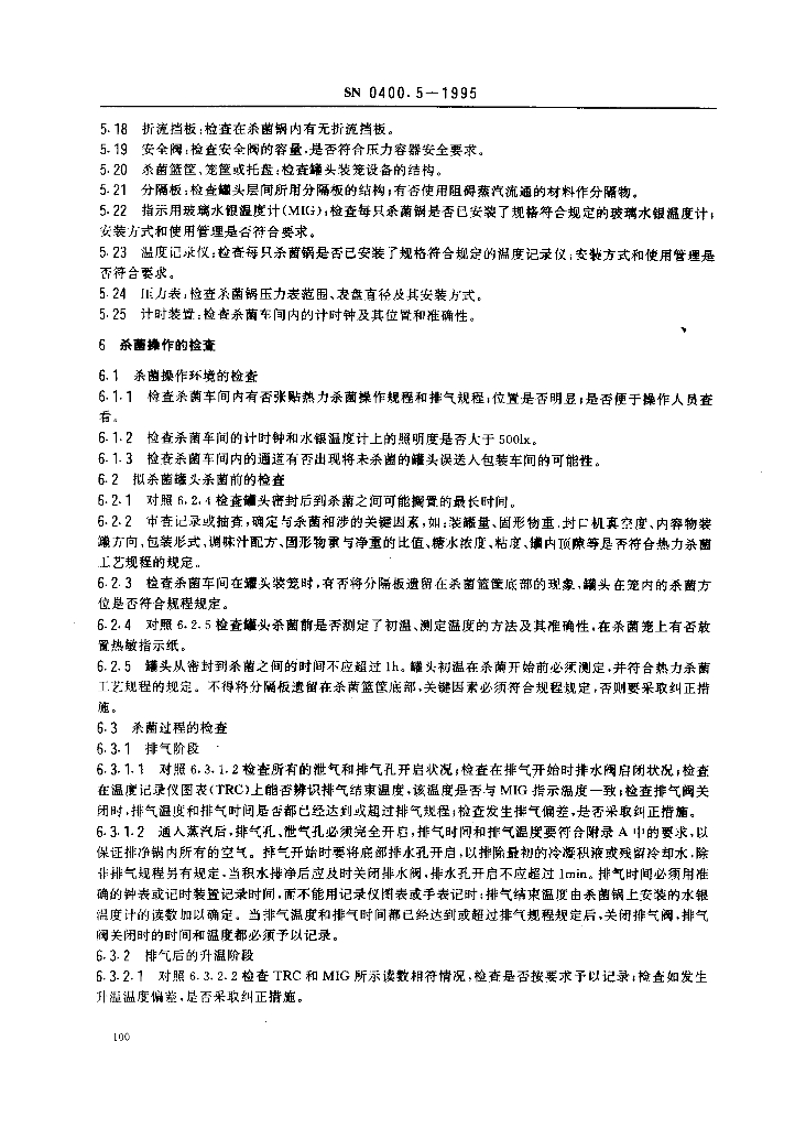 SN 0400.5-1995 出口罐头检验规程 热力杀菌