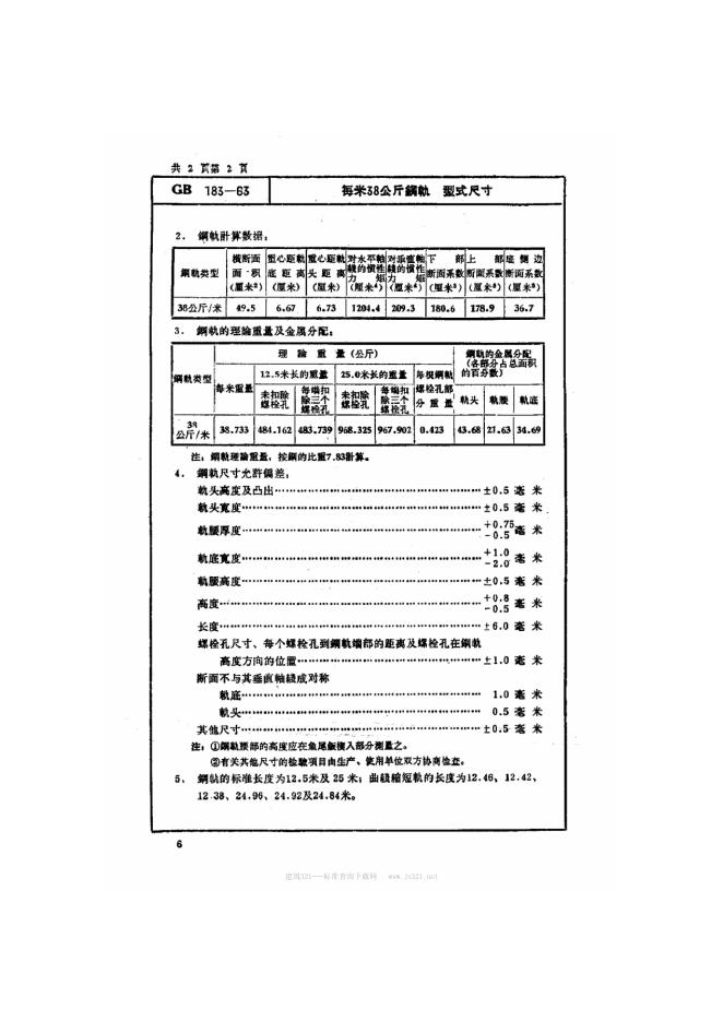 GB/T 183-1963 每米38公斤钢轨型式尺寸