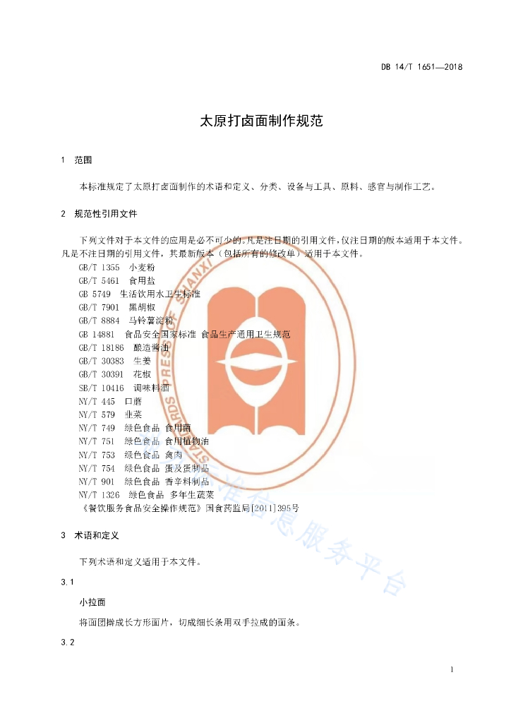 DB14/T 1651-2018 太原打卤面制作规范
