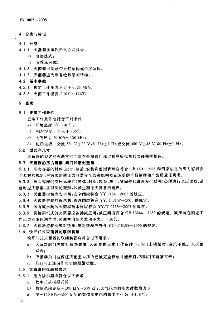 YY 1007-2005 立式压力蒸汽灭菌器