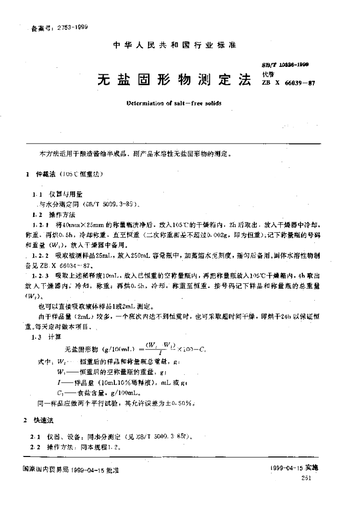 SB/T 10326-1999 无盐固形物测定法