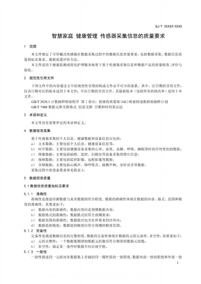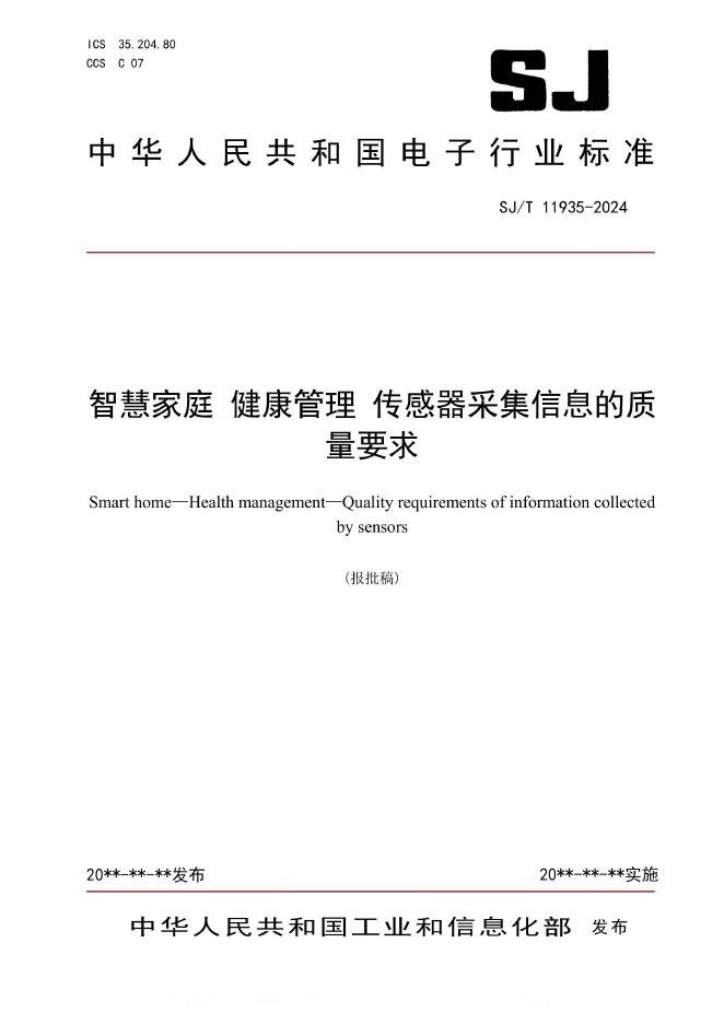 SJ/T 11935-2024 智慧家庭 健康管理 传感器采集信息的质量要求(报批稿)