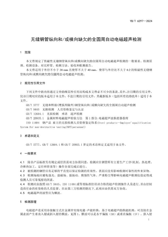 YB/T 6297-2024 无缝钢管纵向和/或横向缺欠的全圆周自动电磁超声检测