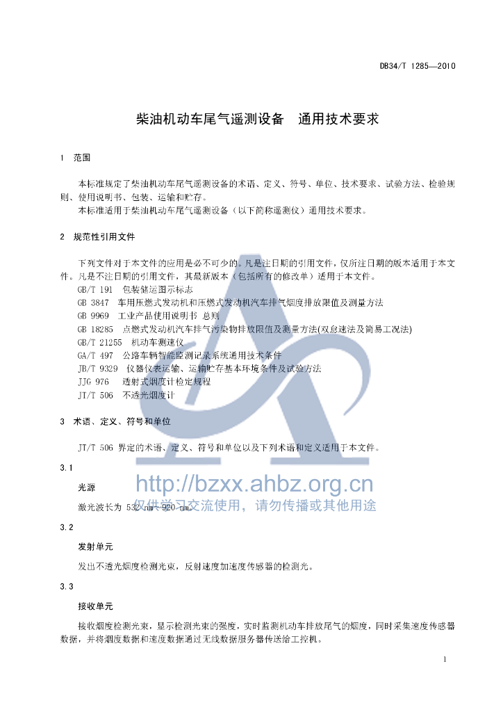 DB34/T 1285-2010 柴油机动车尾气遥测设备 通用技术要求