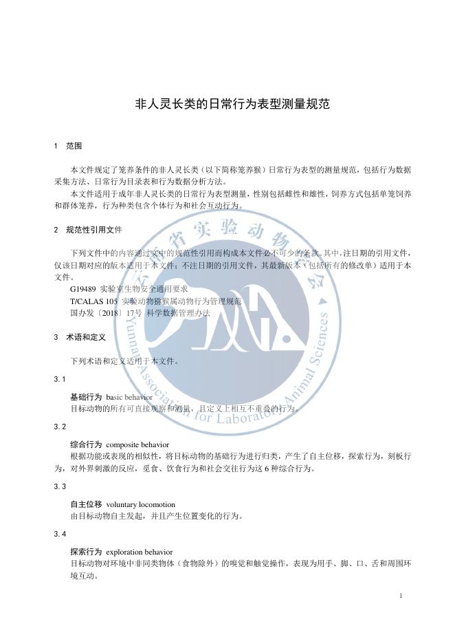 T/YALAS 012-2025 非人灵长类的日常行为表型测量规范