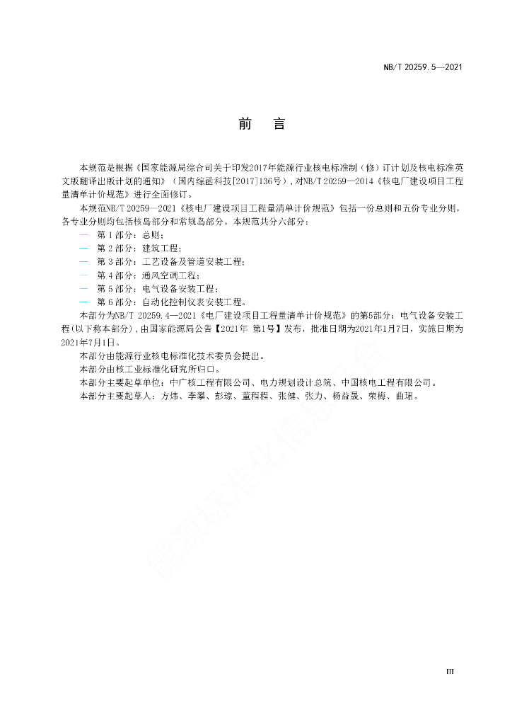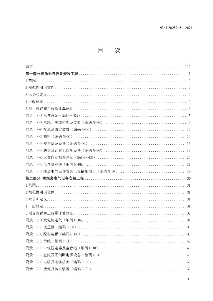 NB/T 20259.5-2021 核电厂建设项目工程量清单计价规范 第5部分:电气设备安装工程