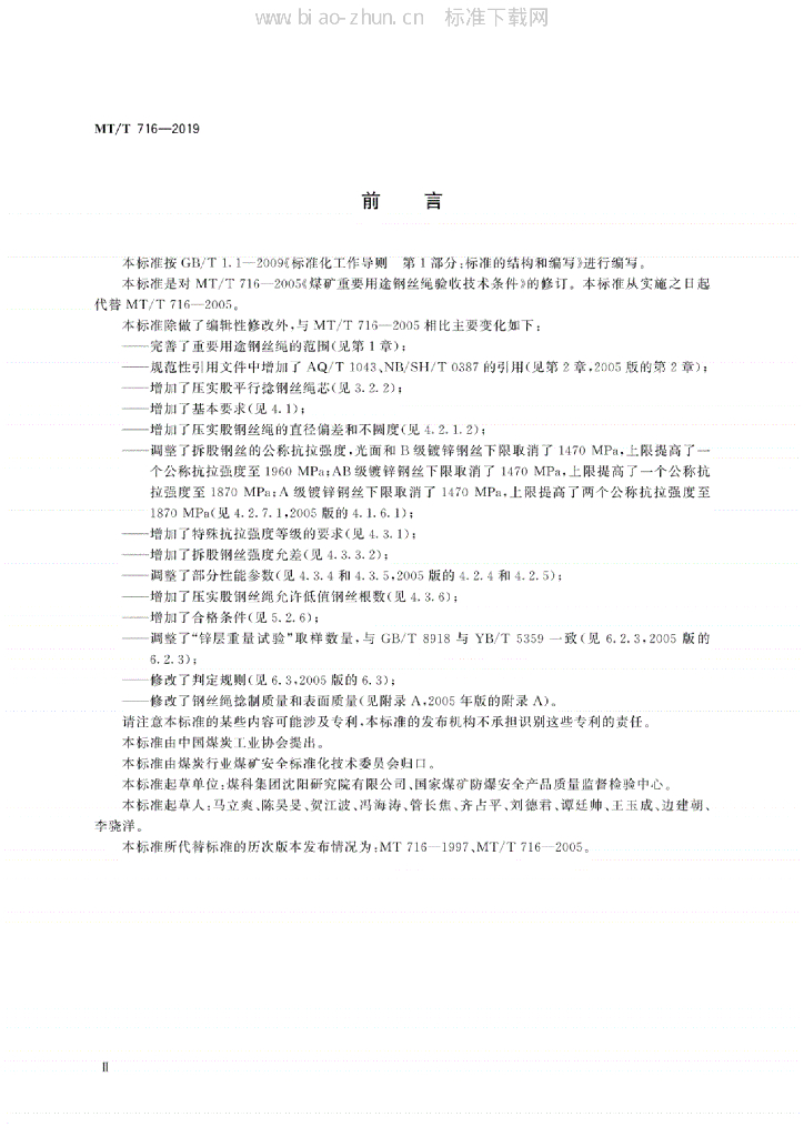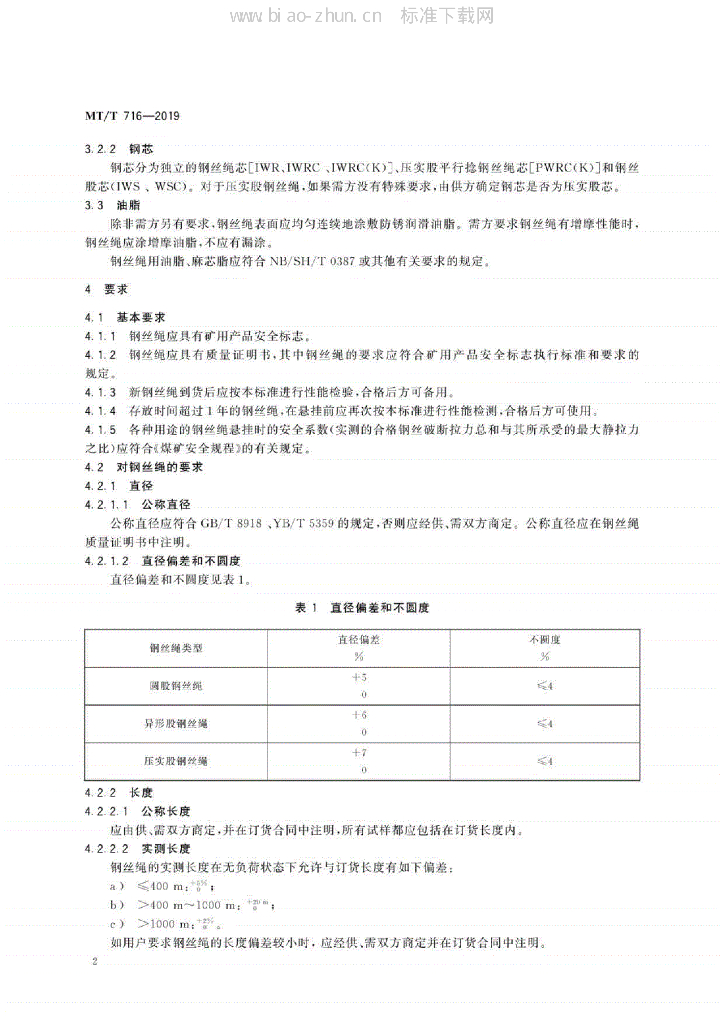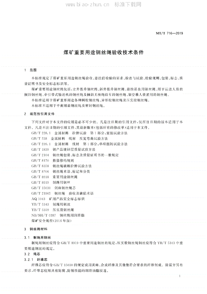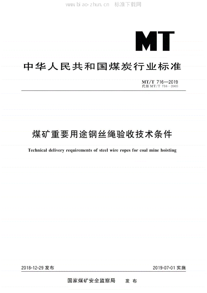 MT/T 716-2019 煤矿重要用途钢丝绳验收技术条件