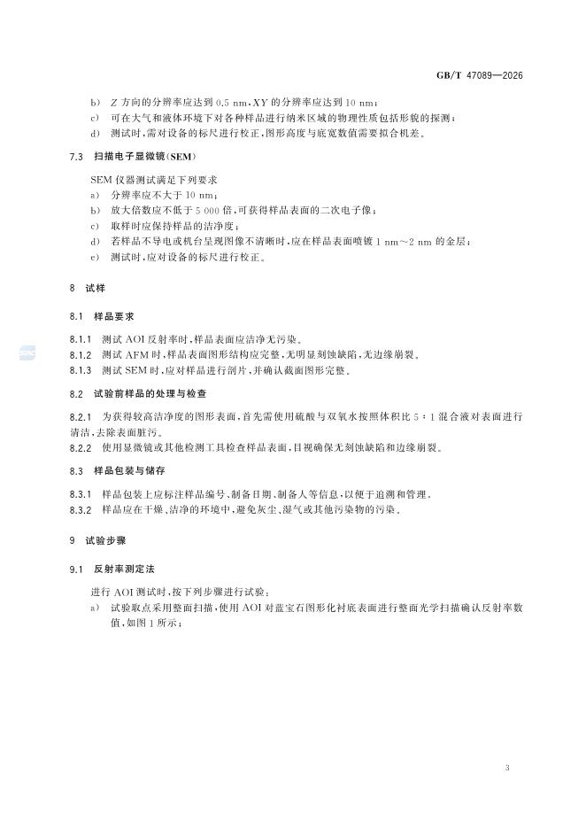 GB/T 47089-2026 蓝宝石图形化衬底表面图形几何参数的测定方法